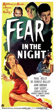 Es gibt im Film Noir ab 1945 so manche B-Produktion kleiner Filmstudios, die mit einem sichtbar geringen Budget gedreht wurde und die dennoch aus verschiedenen Gründen über sich hinaus wuchs und zum geschätzten Klassiker avancierte. Dazu gehören Werke wie Edgar J. Ulmers Umleitung (USA 1945), John Reinhardts Open Secret (USA 1948) oder Cyril Endfields Aufruhr in Santa Sierra (USA 1950). Maxwell Shanes Fear In The Night, der durch eine Vorlage Cornell Woolrichs (Zeuge gesucht, USA 1944) - einem populären Lieferanten für Film-Noir-Stories - bestechen kann, gehört definitiv nicht dazu. Hier fehlen die zwei wesentlichen Ingredienzien, die dann trotz geringer finanzieller Ressourcen einen klasse B-Film ausmachen – innovative Regie und herausragende Darsteller. Fear in The Night ist ungeachtet seiner Traumsequenzen, die mit denen in Edward Dmytryks Mord, mein Liebling (USA 1944) oder in Jean Renoirs The Woman On The Beach (USA 1946) nicht ansatzweise mithalten können, bestenfalls solide. Das Drehbuch hakt an vielen Stellen, so dass die Chemie der Rollencharaktere im Zug der Entwicklung nicht stimmig erscheint. Teils ist dies auch aufs mäßige Schauspiel von Kay Scott und DeForest Kelley zurückzuführen, die als Paar nicht überzeugen können und gegenüber Ann Doran und Paul Kelly (als Cliff Herlihy, Inspektor der Mordkommision und Graysons Schwager) deutlich abfallen.